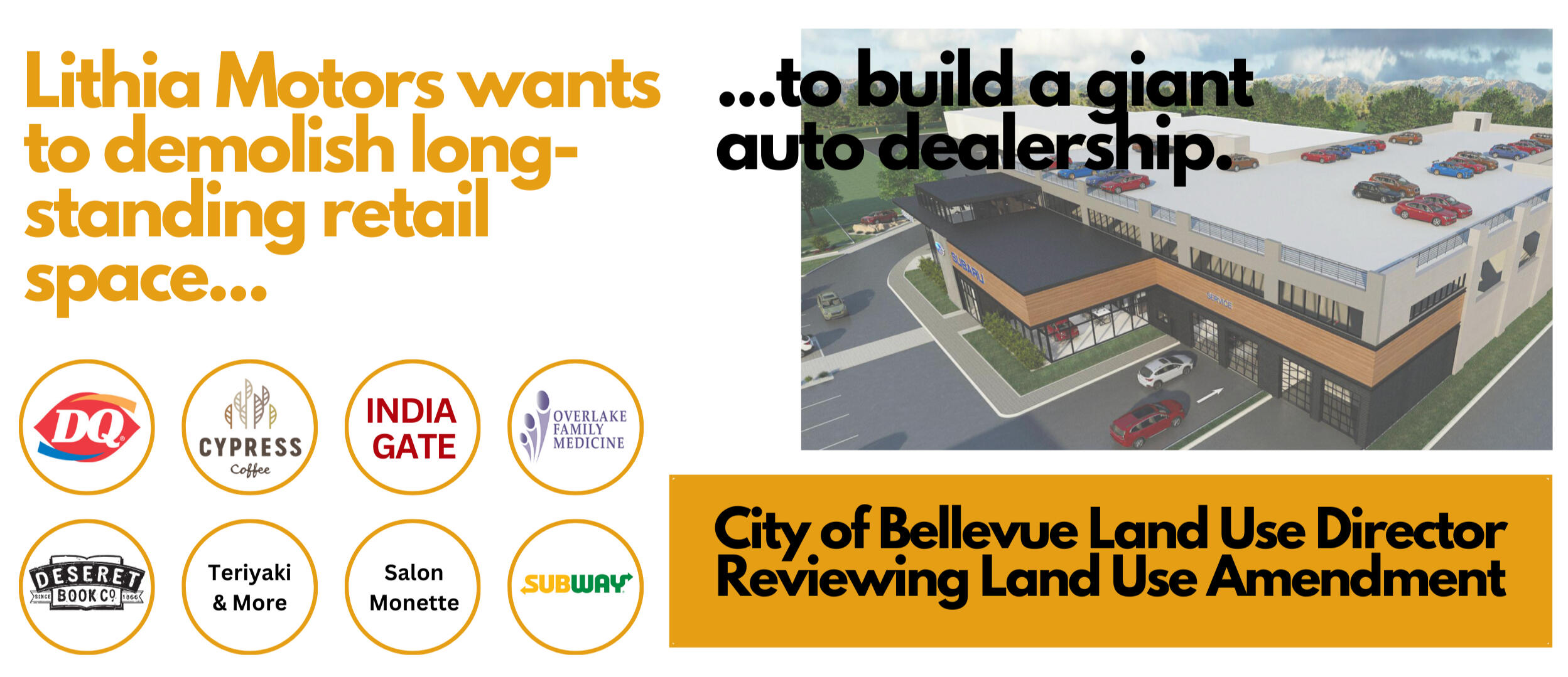 The proposed new auto dealership isn't community-based planning in Bellevue, creating negative impact for the daily life of residents.